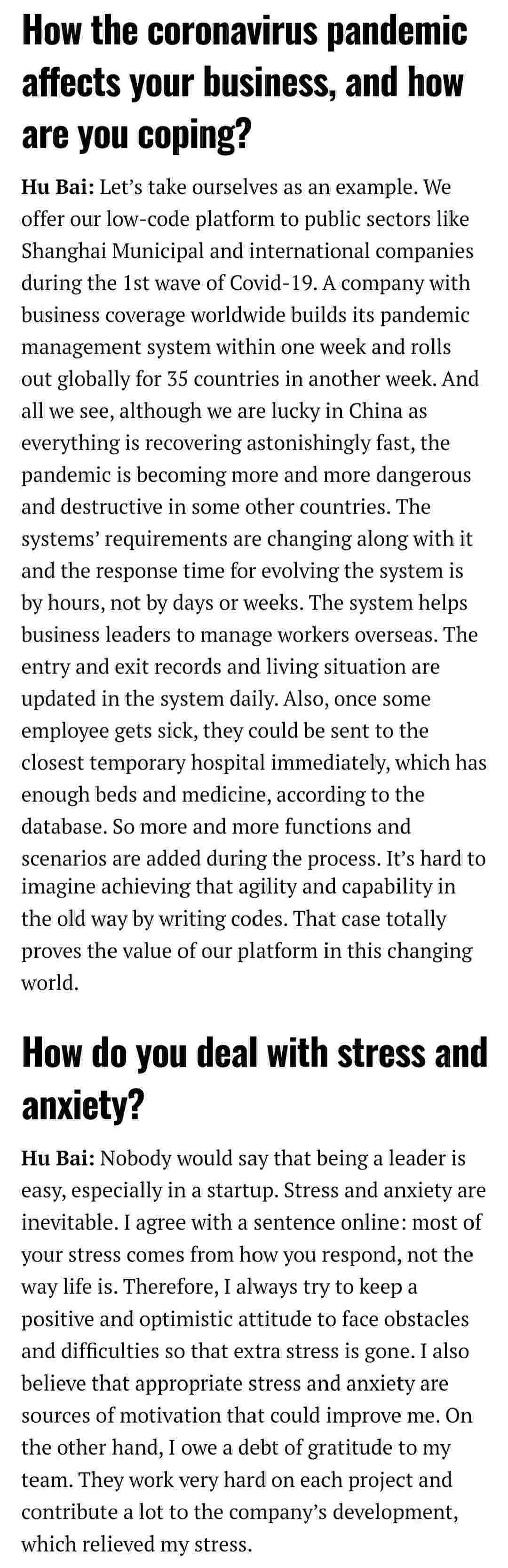 2021年年初,,,,,,,,爱湃斯科技CEO胡柏受邀接受法媒Startup.info的专访,,,,,,,,,,,与Startup info的读者分享了自己的创业经历、、、、、、以及低代码平台EBPAY的创新之处。。。。。。