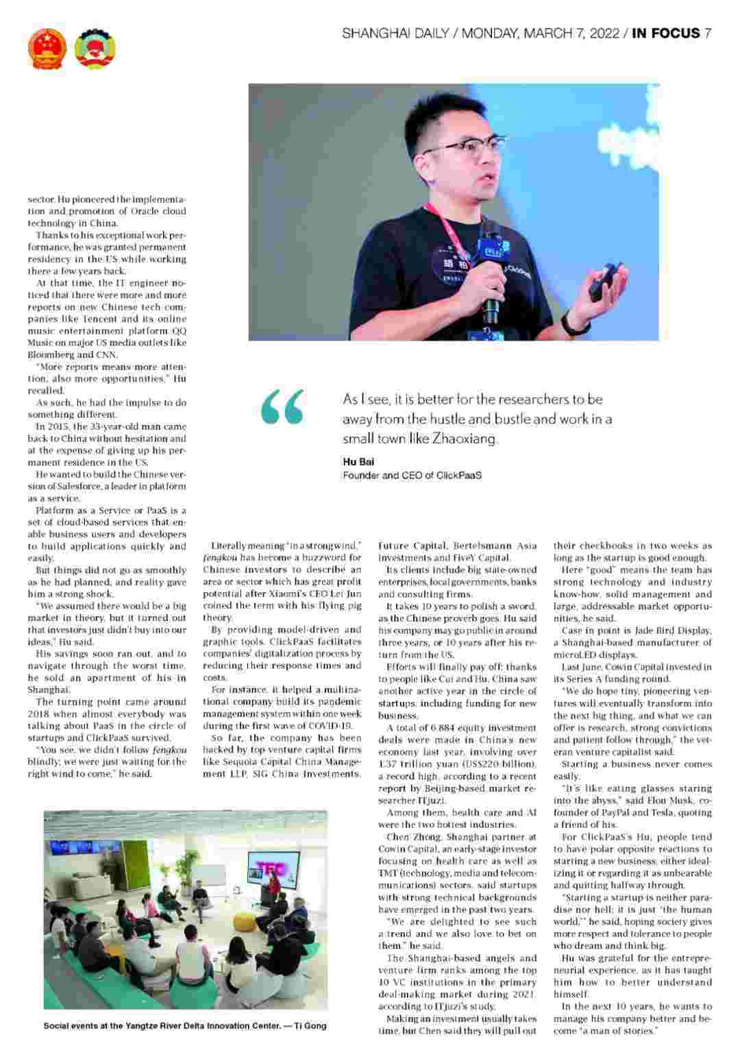 【创业故事】《上海日报》专访EBPAY创始人、、、、、、CEO胡柏,,,,,,,,,探究其创业背后的故事